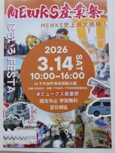 3月14日(土)千代田町東部運動公園にてMEWKS産業祭が開催されます。